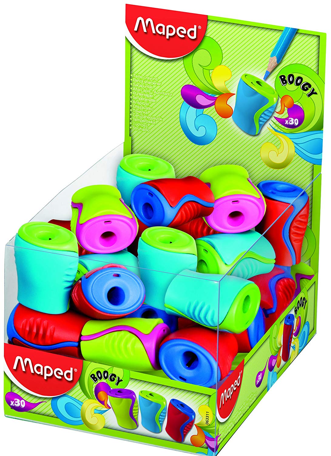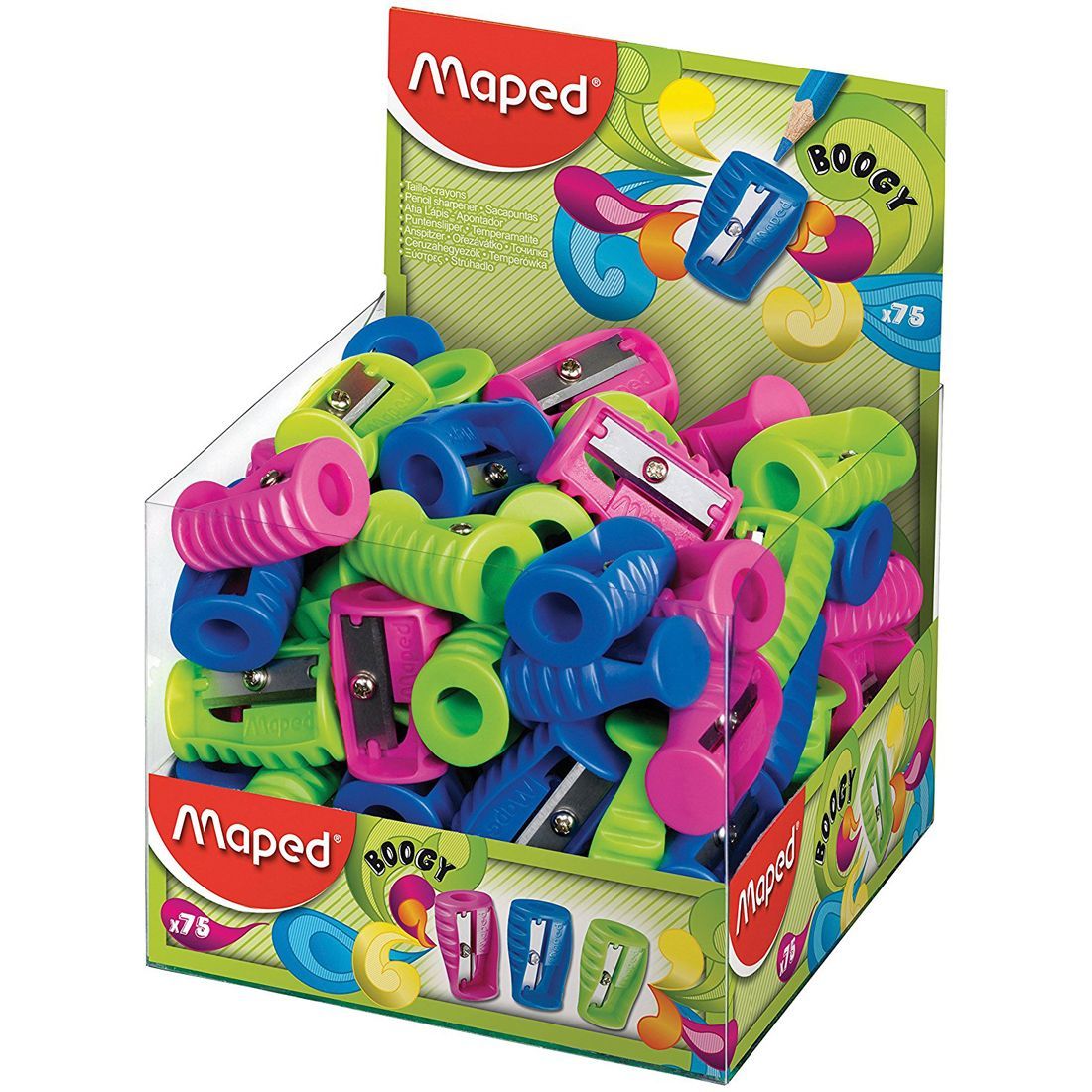 Maped Pencil Sharpener sharpener Boogy Compact Unbreakable With receptacle Assorted colors. 1-hole, box