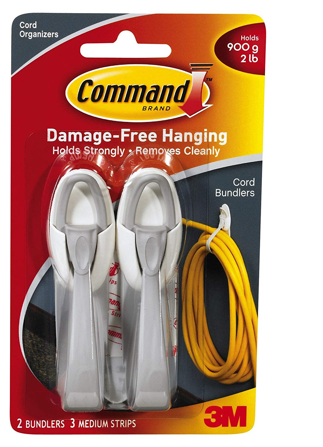 - Pack includes 2x bundlers, 3x medium Command strips