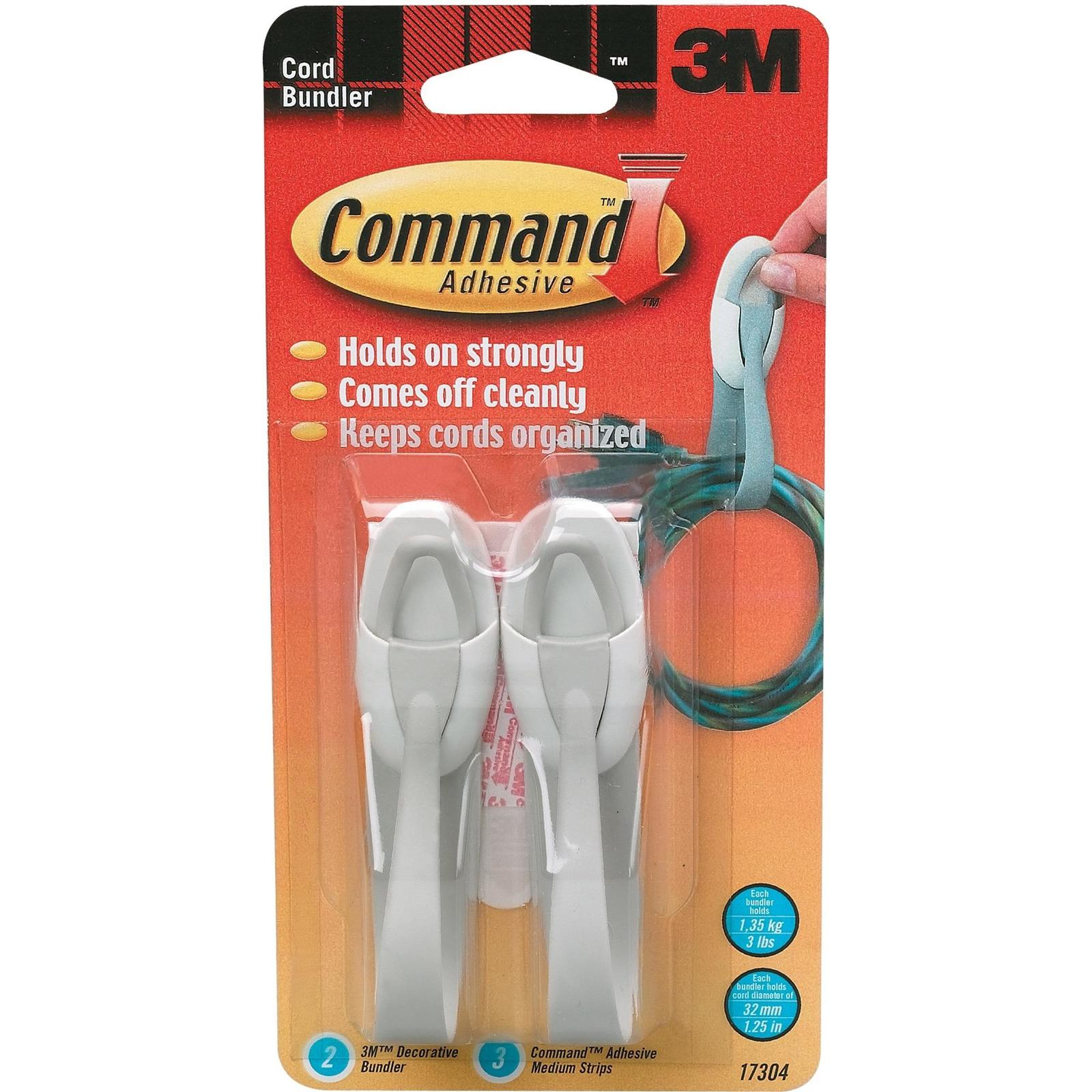 - The pack includes a set of three 3M Command Strips for affixing the bundlers to walls easily and securely. Each bundler can hold cords up to 32mm in diameter.