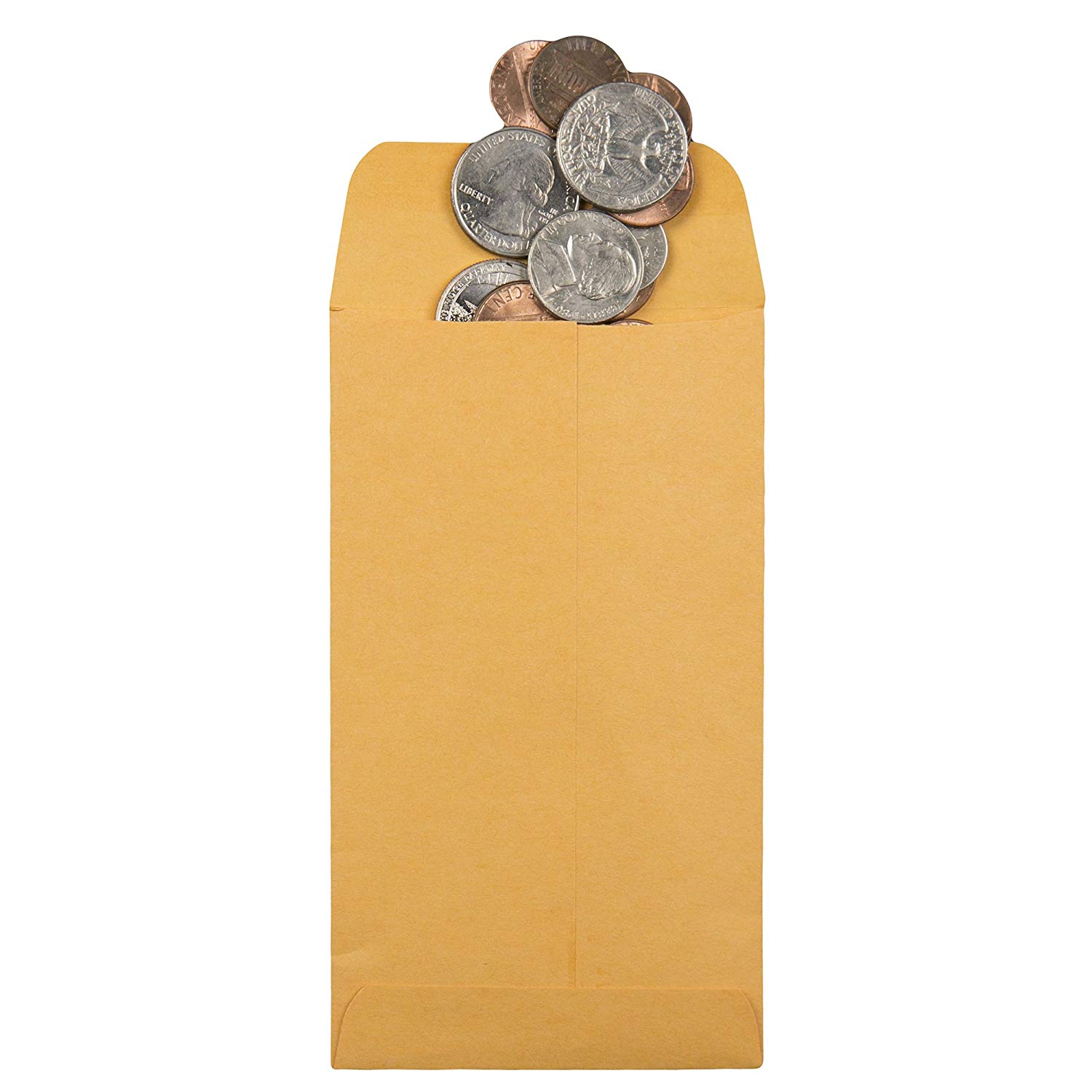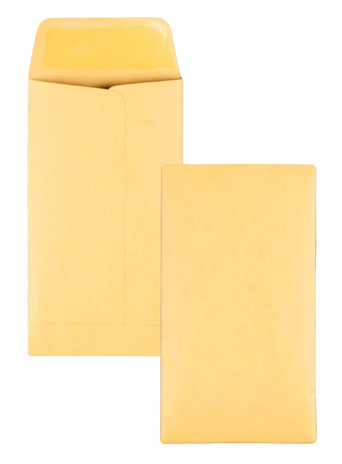Brown Kraft envelope features a gummed closure. Heavyweight 28-lb. stock. For home, office, interoffice, or mailing. Gummed flap.