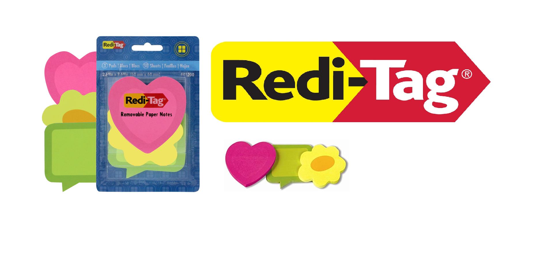 REDI-TAG NOTEPADS DIE-CUT SHAPES ASSORTED 3X