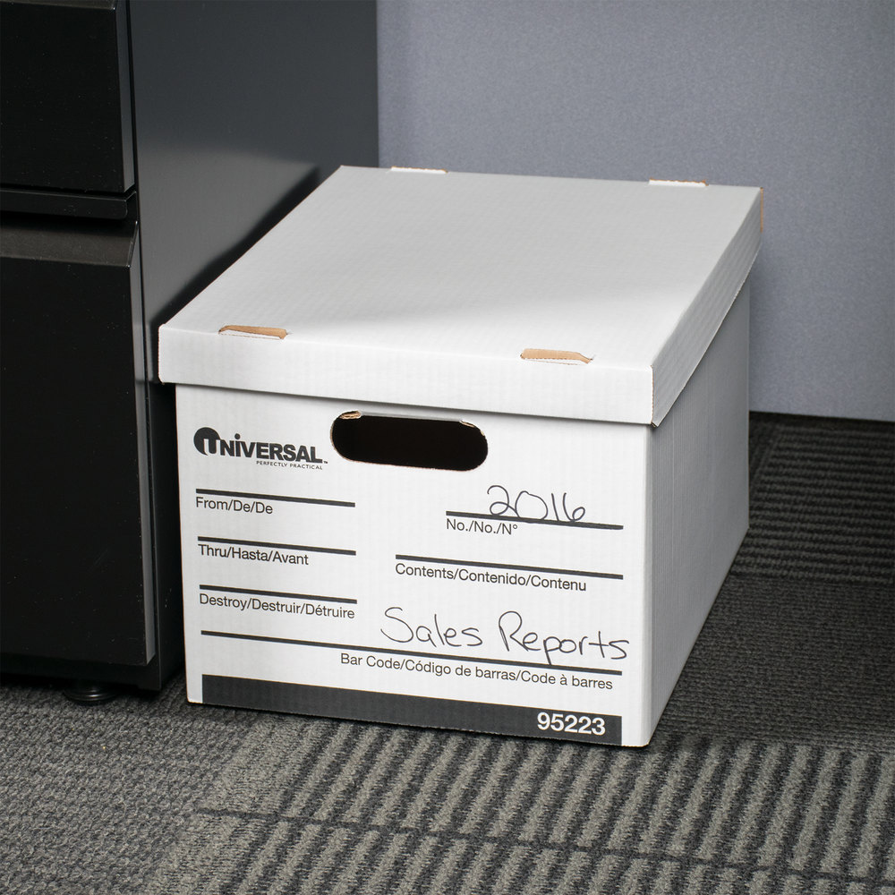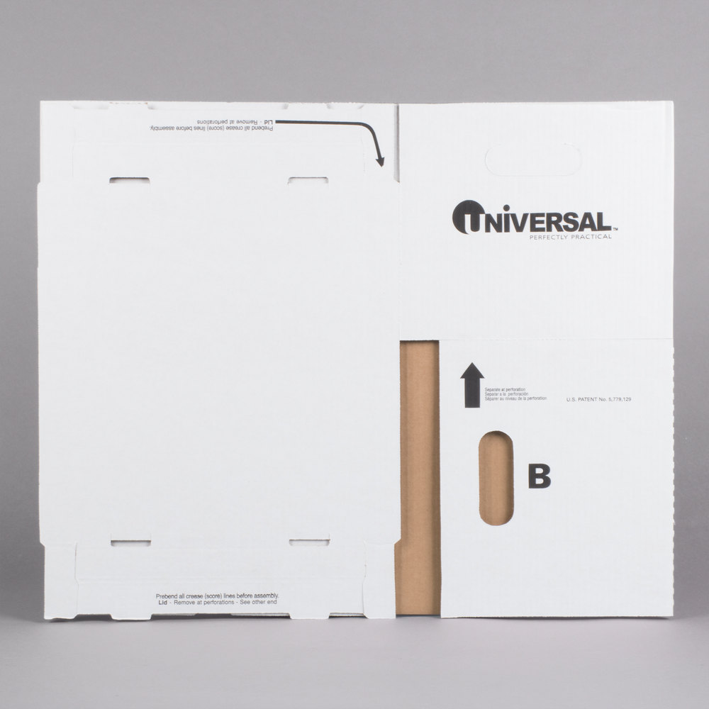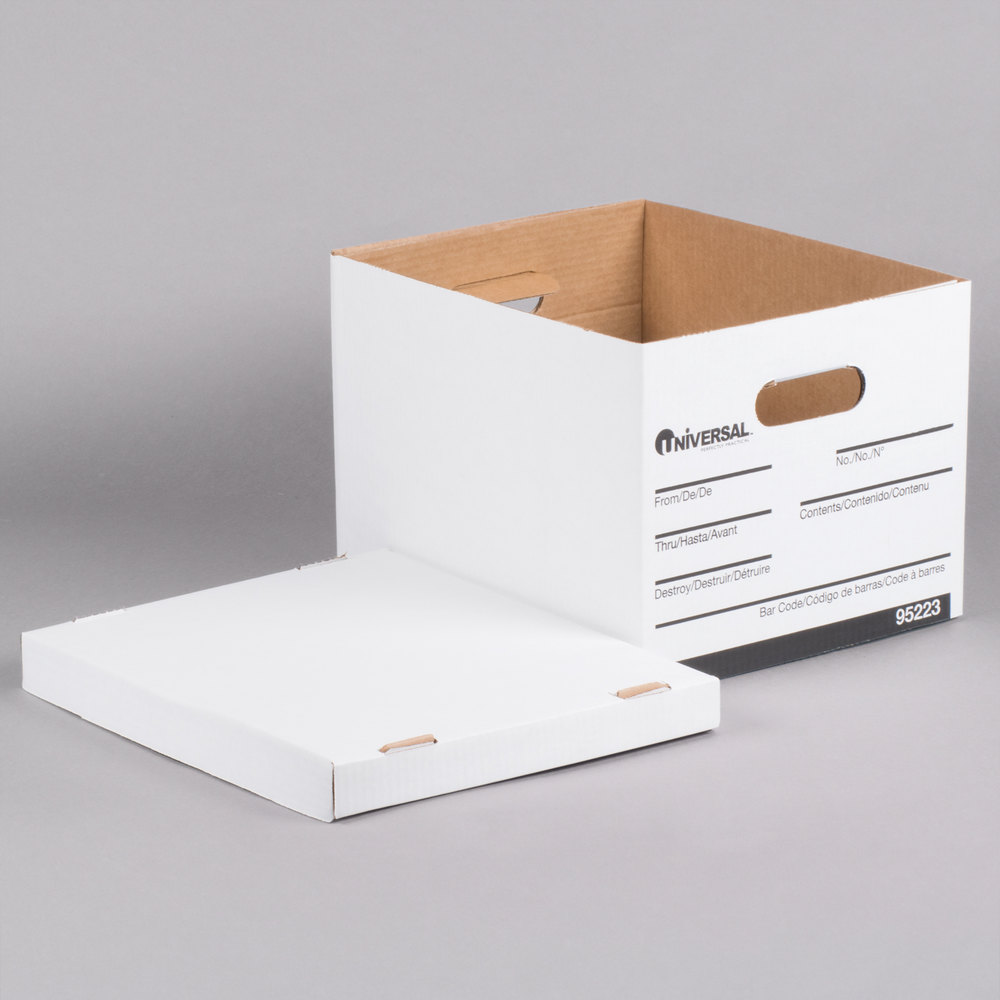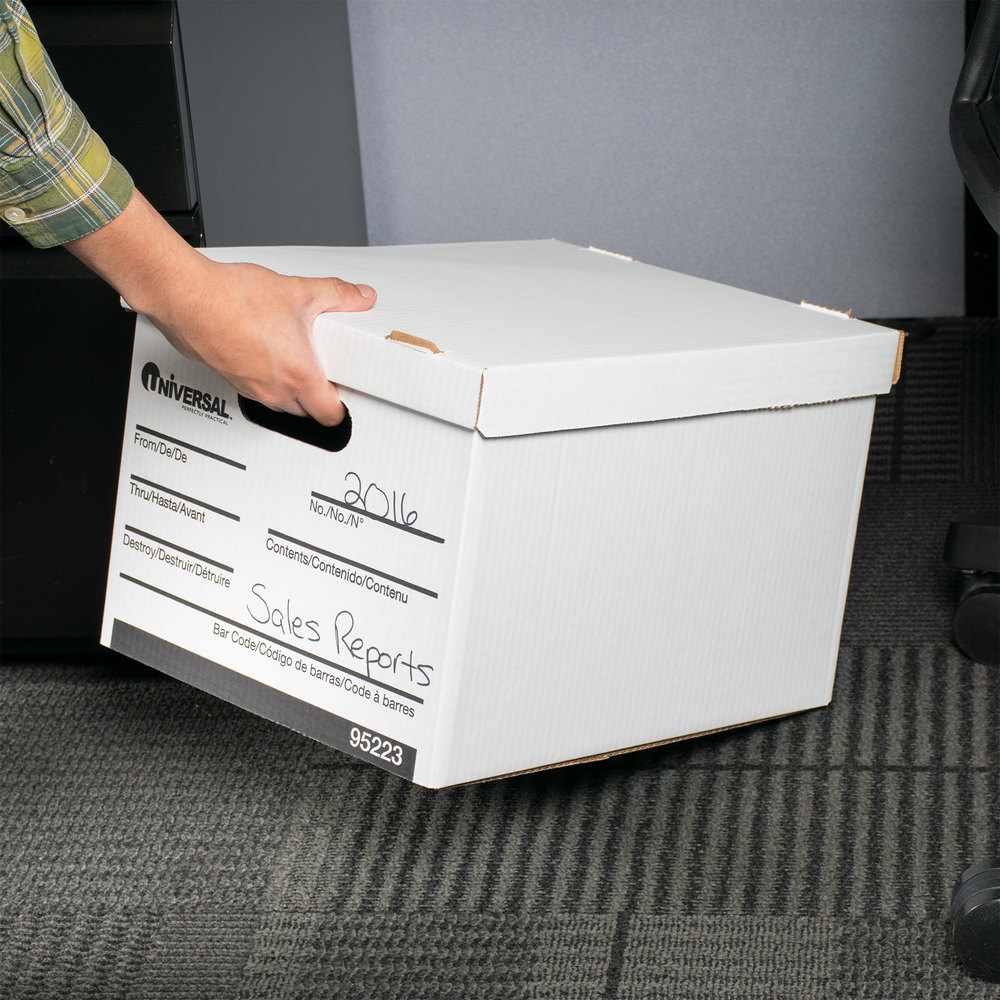 Universal : Quick Set-Up Lift-Off Lid Box, Ltr/Lgl, Fiberboard, 12 x 15 x 10, BLK/WE, 12/Ctn Medium-duty, quick-assembly storage box with lift-off lid for letter or legal size files.