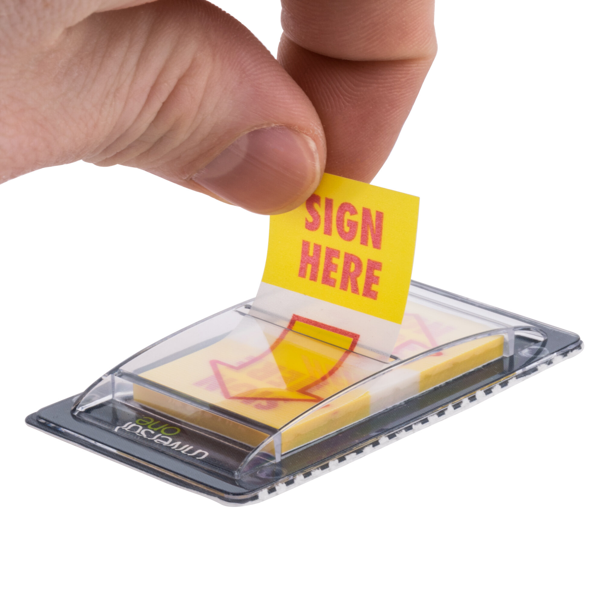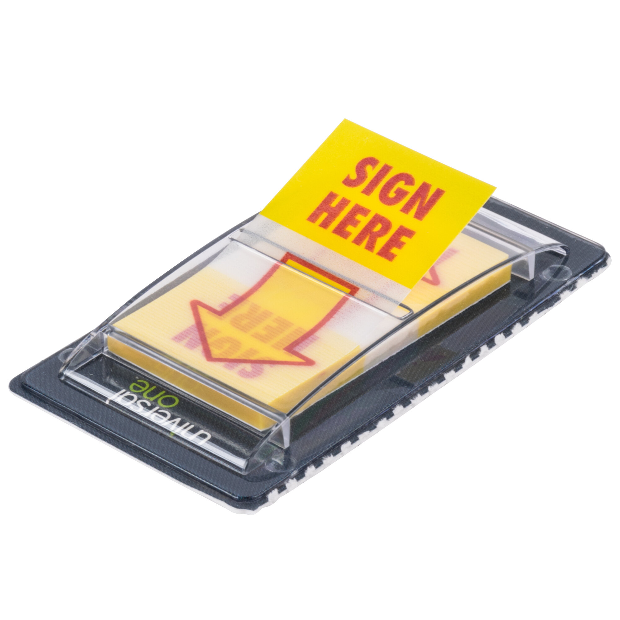 Universal UNV99005 1" x 1 3/4" Yellow / Red "Sign Here" Arrow Page Flag with Dispenser - 2/Pack