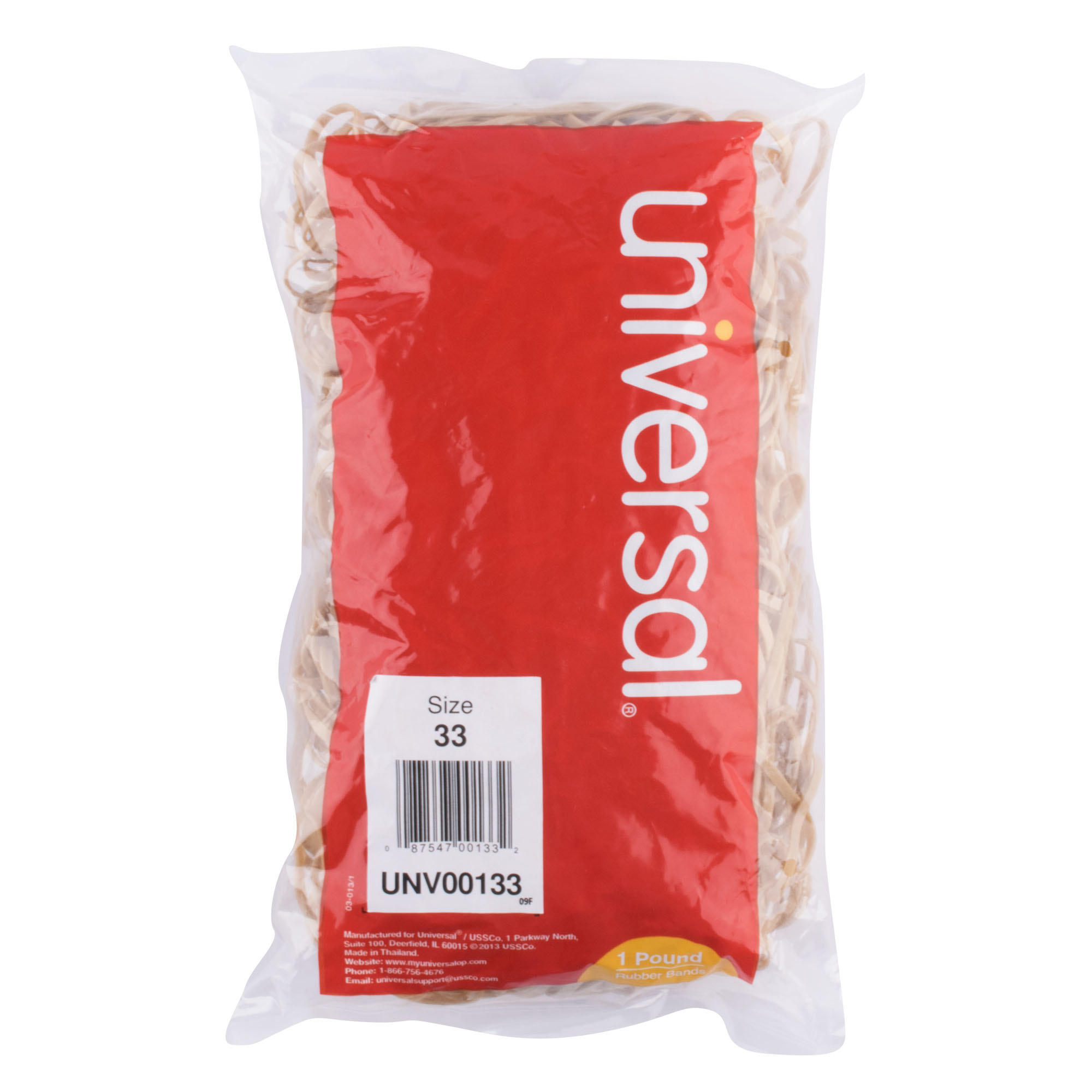 - Always keep a full stock of rubber bands at your office, publishing company, daycare, school, or other business management location with these Universal UNV00133 3 1/2" x 1/8" beige #33 rubber bands! A staple product in your supply room, you can use rubber bands for a variety of purposes, such as binding together newspapers or holding stacks of pencils.