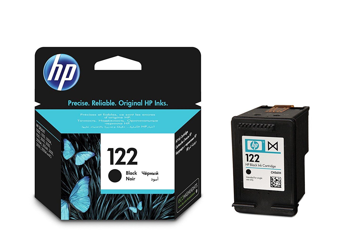 - HP 122 Black Ink Cartridges are designed to deliver user-friendly features and great value. Print documents with laser-quality black text and sharp images that resist fading. Print laser-quality text, plus sharp graphics and images that resist fading for decades1. Get enhanced image quality using papers with the ColorLok symbol.