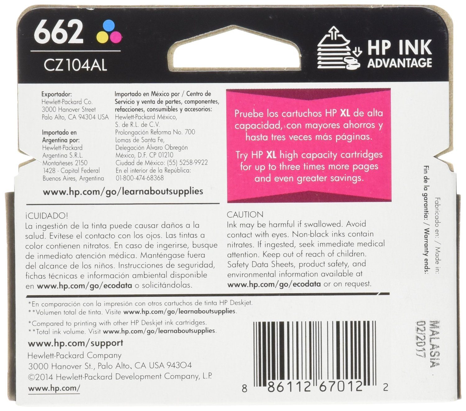 HP INK 662 TRI-COLOR CARTRIDGE (CZ104AL)