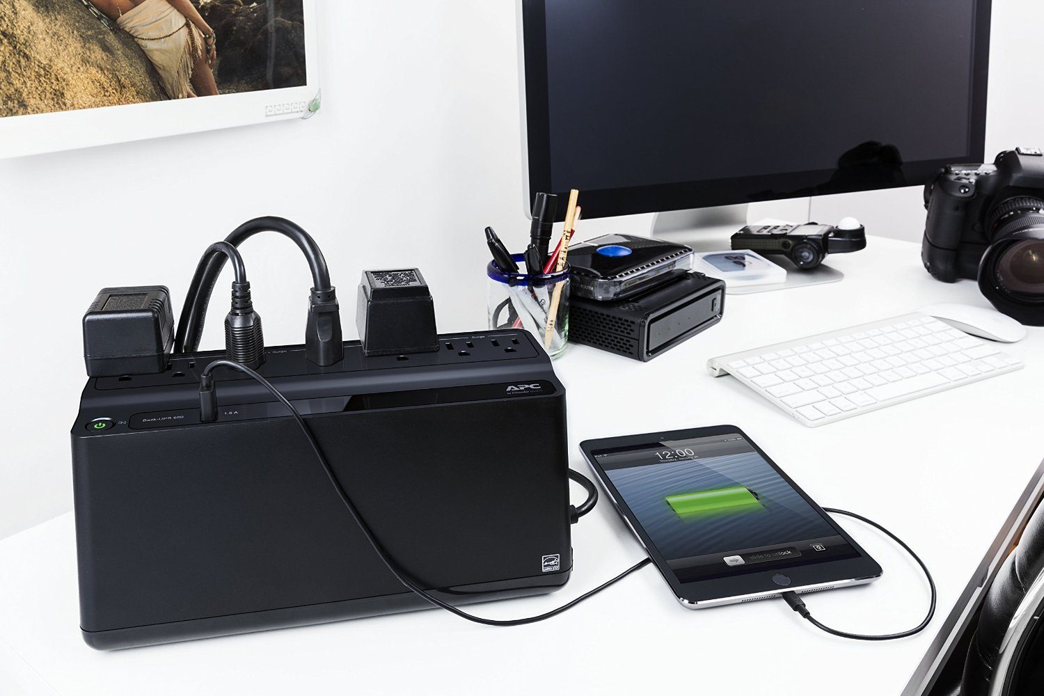 - When the power goes out, an APC battery backup with surge protection provides guaranteed power for computers, external hard-drives and other electronics, including your wireless router so you can maintain a network connection for your IoT devices when you need it most!