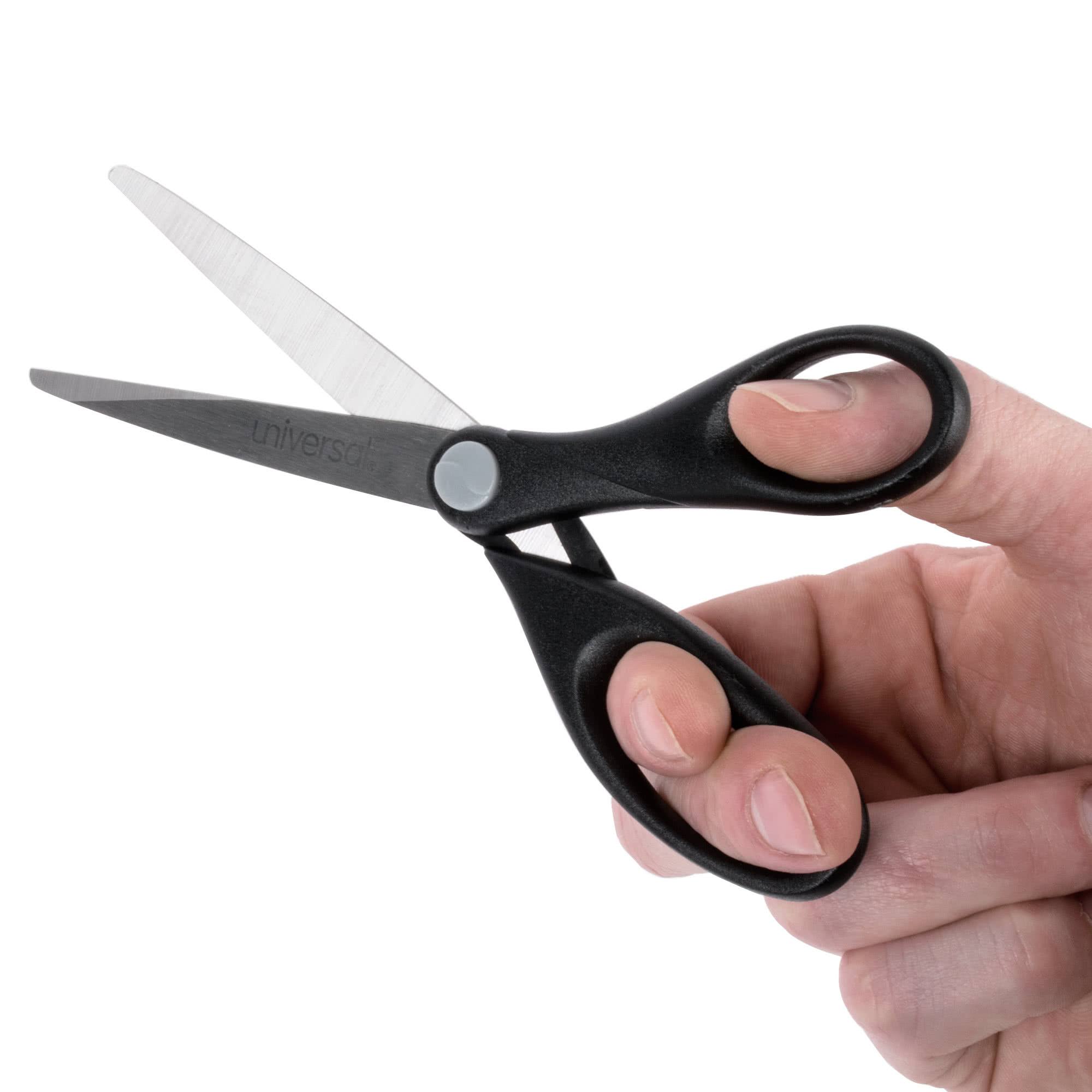 - A black, straight handle accommodates left- or right-handed users. Keep your business in good supply by purchasing these Universal scissors!