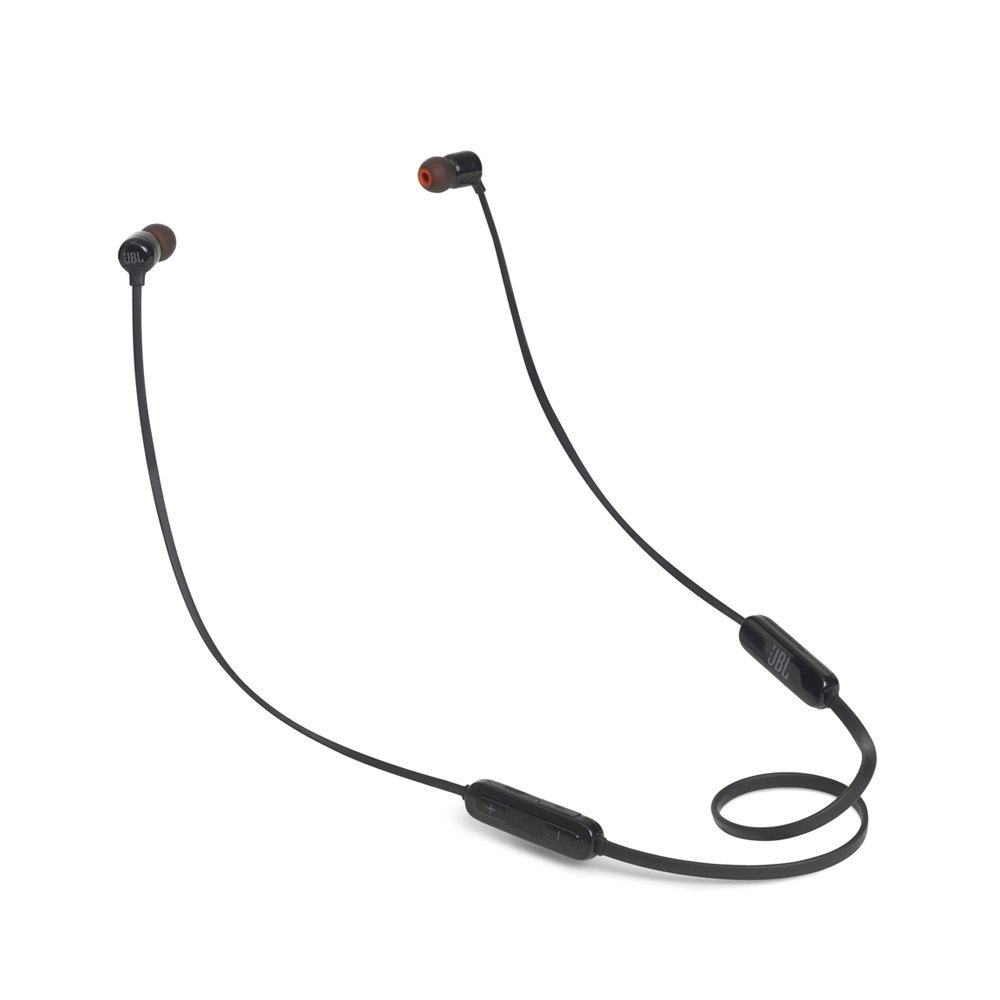- A Grab'n'Go Solution That Sounds GreatFeaturing JBL Pure Bass Sound the JBL T110BT headphones offer a grab ‘n go wireless solution for your everyday usage along with the ability to make or take hands-free calls and 6 hours of battery life. Imagine headphones that quickly charge in 2 hours come in 6 distinctive colors feature a flat tangle free cable and are lightweight enough to comfortably wear for hours on end. And when you combine magnets that ensure the headphones are not dangling when not in use the tangle-free cable and the comfort of the ergonomic ear-tips and neckband design it’s easy to see how the JBL T110BT headphones can become an essential part of your day-to-day music loving life.FeaturesJBL Pure Bass Sound6-hour battery life/Recharges in 2 hoursMagnetic cable management3-button remote with microphoneJBL Pure Bass SoundFor over 70 years JBL has engineered the precise impressive sound found in big venues around the world. These headphones reproduce that same JBL sound punching out bass that’s both deep and powerful.6-Hour Battery LifeMicro USB charging built-in battery provides 6 hours of playing time with quick recharge in just 2 hours.Magnetic Cable ManagementEnsures that the headphones remain comfortably secure and tangle-free around your neck when not in use.3-Button Remote with MicrophoneEnjoy wireless calls and manage your music hands free.What's in the Box:T110 Wireless In-Ear Headphones3 sizes of ear tips (S M L)Charging cableWarning cardWarranty cardSafety sheetQuick start guideSpecificationsDriver size: 8.6mmDynamic frequency response range: 20Hz - 20kHzSensitivity: 96dB SPL/1mwSensitivity: 96dB SPL1kHzSensitivity: 96dB SPL/1m@1kHz dB v/pa: -21Impedance: 16ΩBluetooth transmitter power: 0 ~ 4dBmBluetooth transmitter modulation: GFSK DQPSK 8-DPSKBluetooth frequency: 2.402GHz - 2.48GHzBluetooth profiles: HFP v1.5 HSP v1.2 A2DP v1.2 AVRCP v1.5Bluetooth version: V4.0Battery type: GSP05123001Battery type: Polymer Li-ion batt