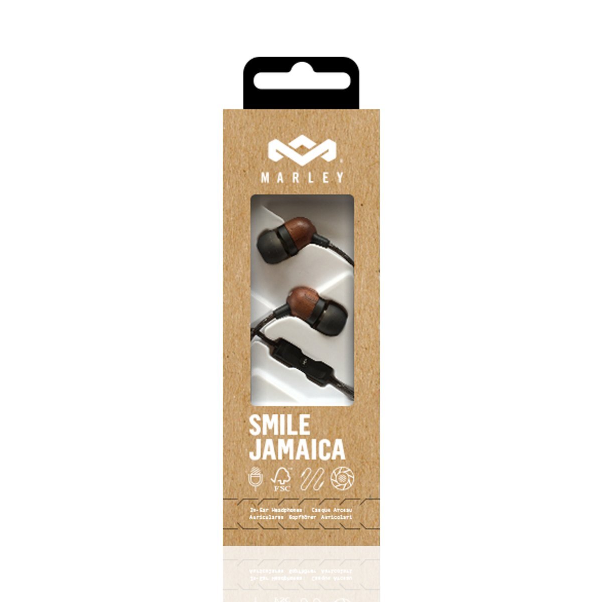 - Small and simple. With the Smile Jamaica noise-isolating earbuds, what you see is what you get. We’ve stripped the in-ear headphones down to their essence and built them back up using natural materials and recycled plastics. The music shines through crisply and even though they’re small, the bass vibrates. Features and materials include 9 mm neodymium driver, microphone with 1-button, two silicone ear gel sizes (small and medium), FSC™ wood rear housing, aluminum front housing, durable braided cable,