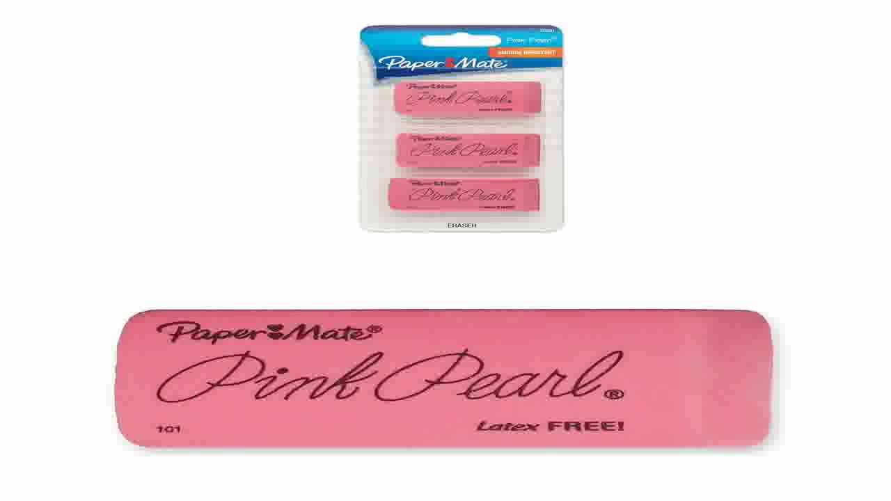 Pink Pearl Eraser For Pencil Marks, Rectangular Block, Large, Pink, 3/Pack