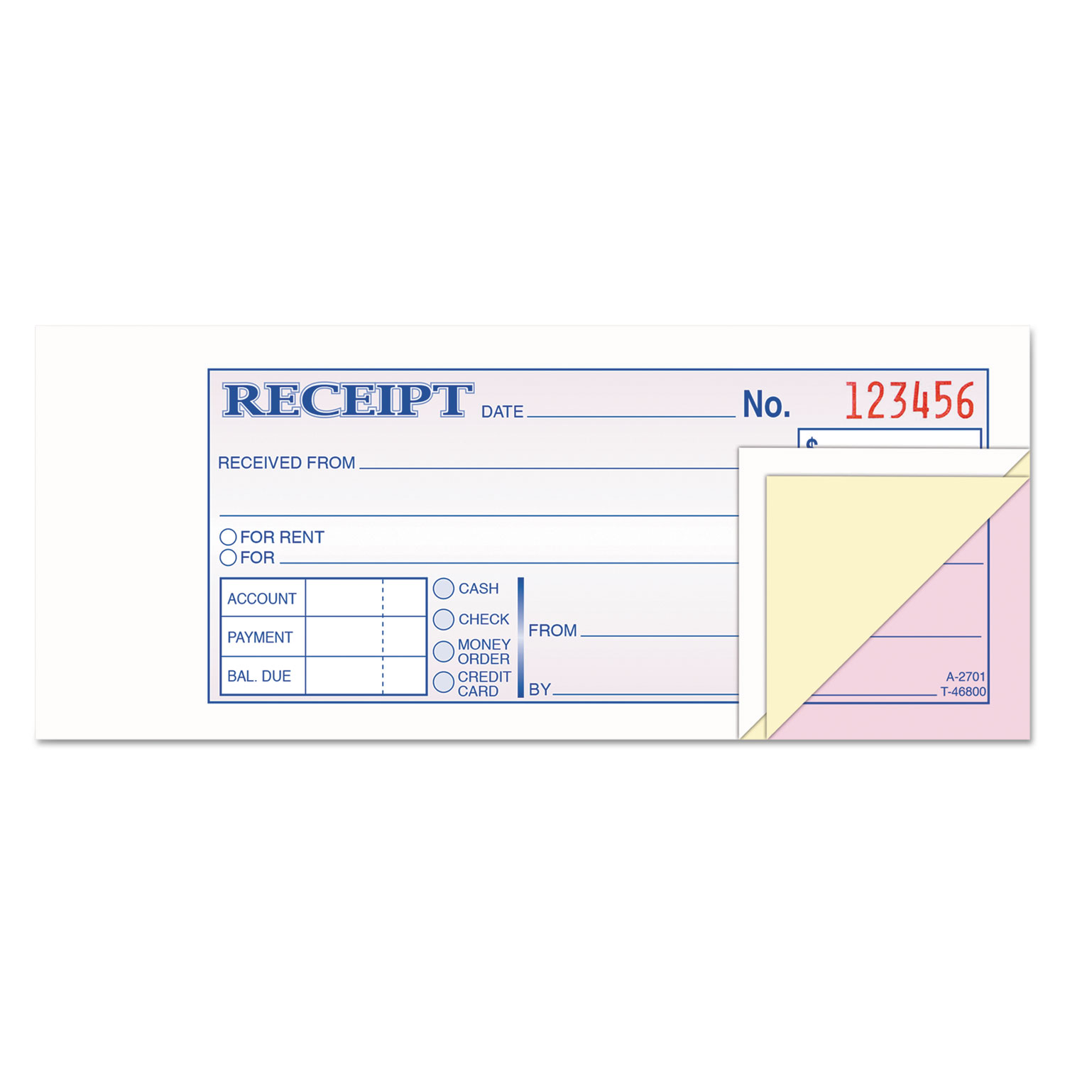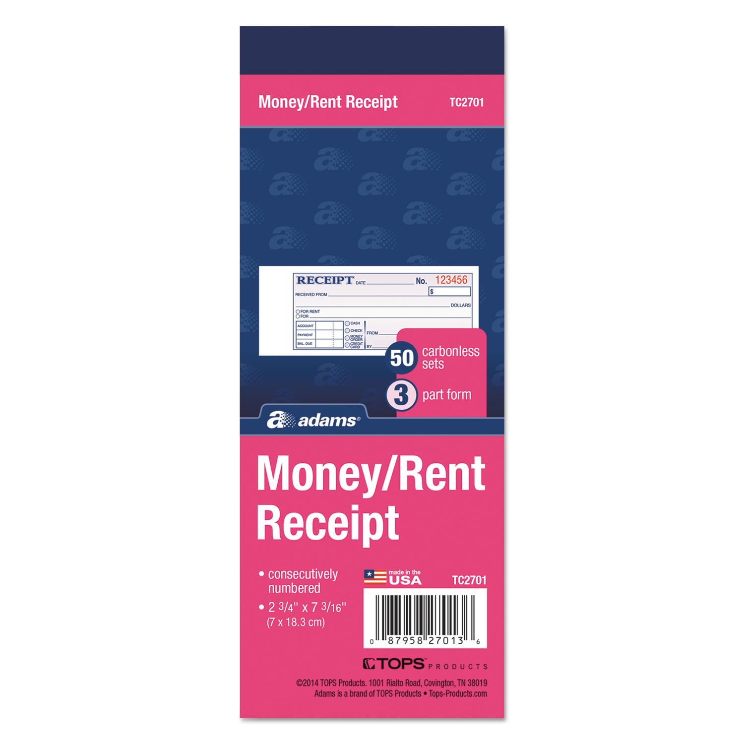 ADAMS CARBONLESS RECEIPT BOOK 3-PART 50 SHEETS