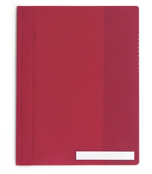- Transparent front cover and opaque back cover with inside pocket and plastic-coated filing mechanism