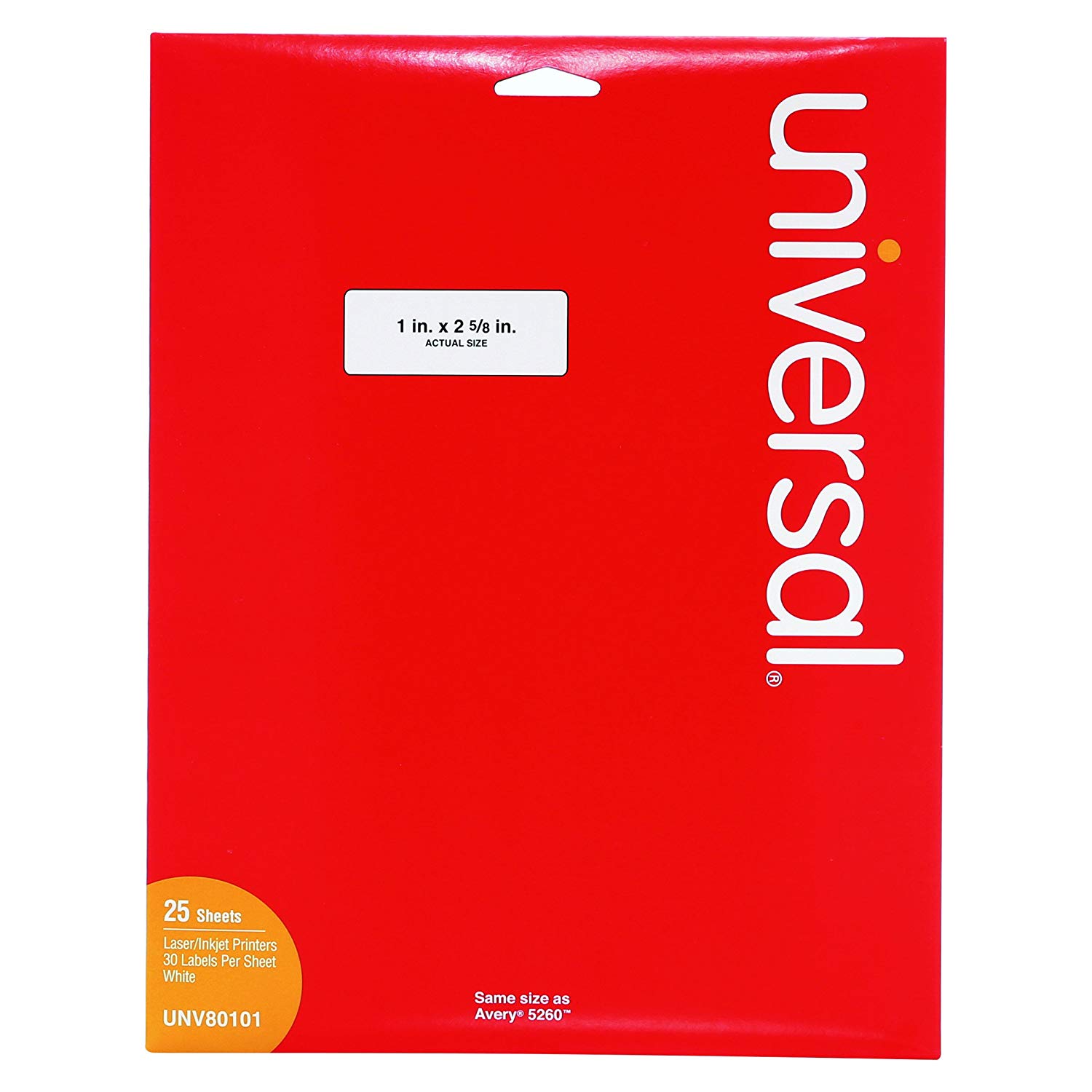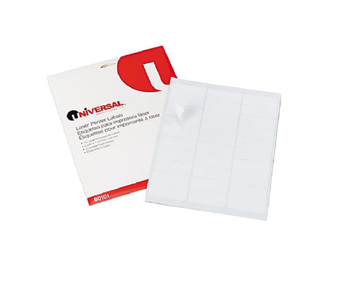 Universal® Laser Printer Permanent Labels, 1 x 2 5/8, White, 750