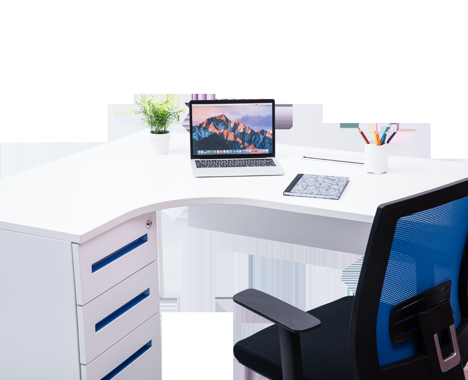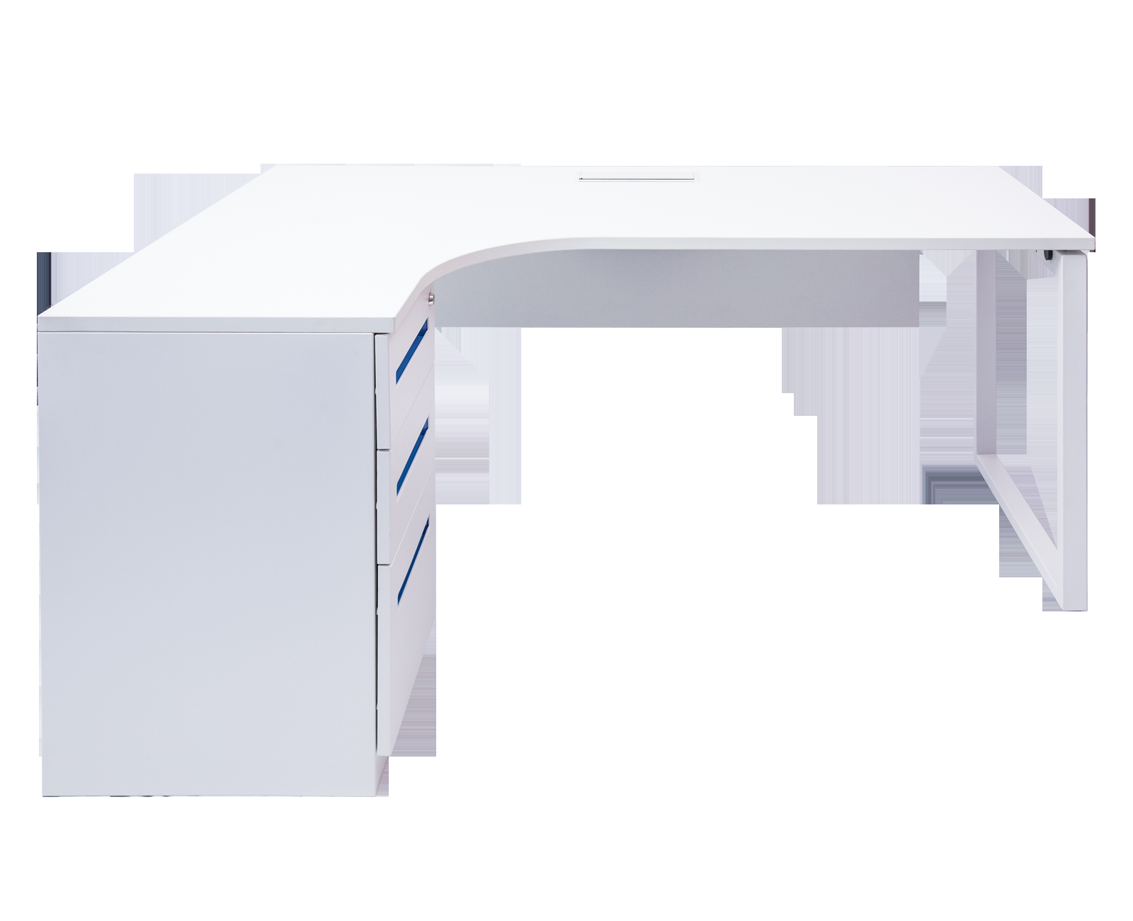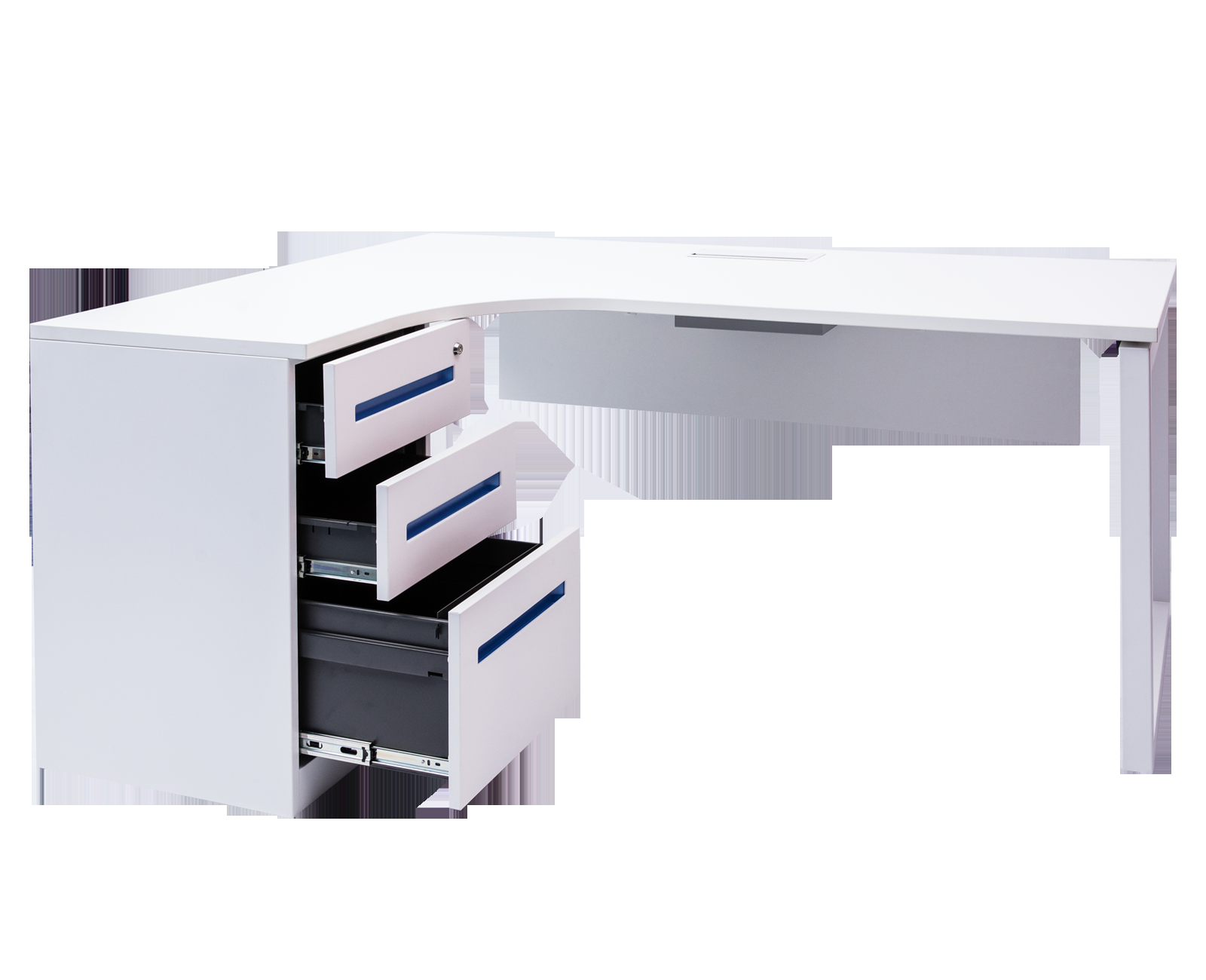 Cezanne L-Shaped White Desk By Mesa - Blue Handle Drawers