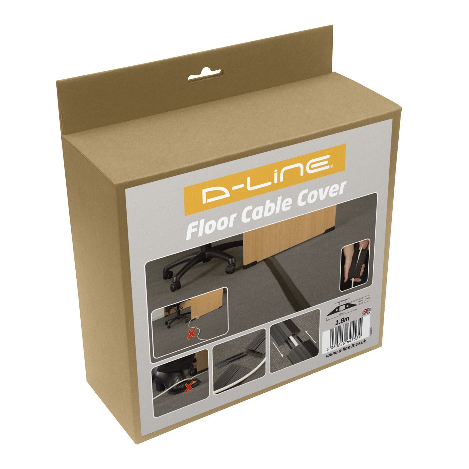 - D-Line Floor Cord Covers have a ribbed non-slip base and pre-split backing for ease of installation; simply push cords into cable cavity.