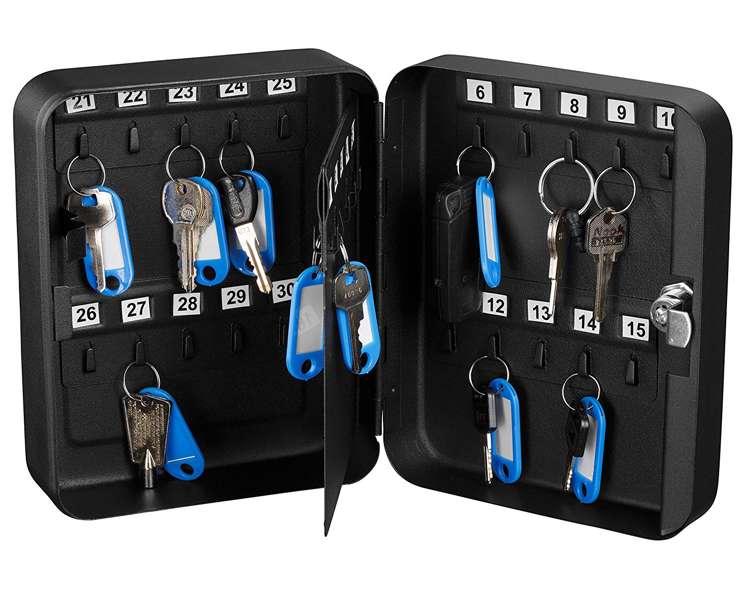 - CONVENIENT, KEY CABINET. This wall mounted key cabinet is offered in two different sizes – 30 and 48 key slots – providing the perfect solution for convenient and secure organization for all of your keys. It has a depth to accommodate larger key rings so you no longer have to remove keys from their rings in order for them to fit inside and comes with key tags to make organization a breeze.