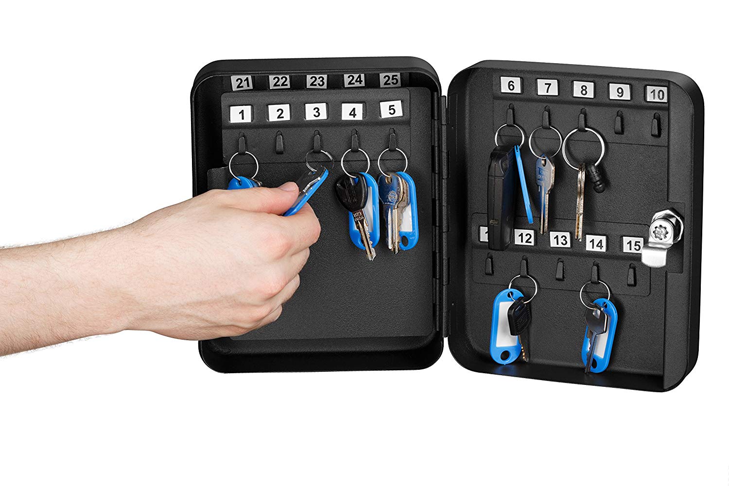- VERSATILE. Many businesses need to store multiple keys on a daily basis. This cabinet is ideal for property managers, car dealerships and repair shops, establishments that offer valet parking services, or for those who just have a lot of keys on hand and need to keep them secure.