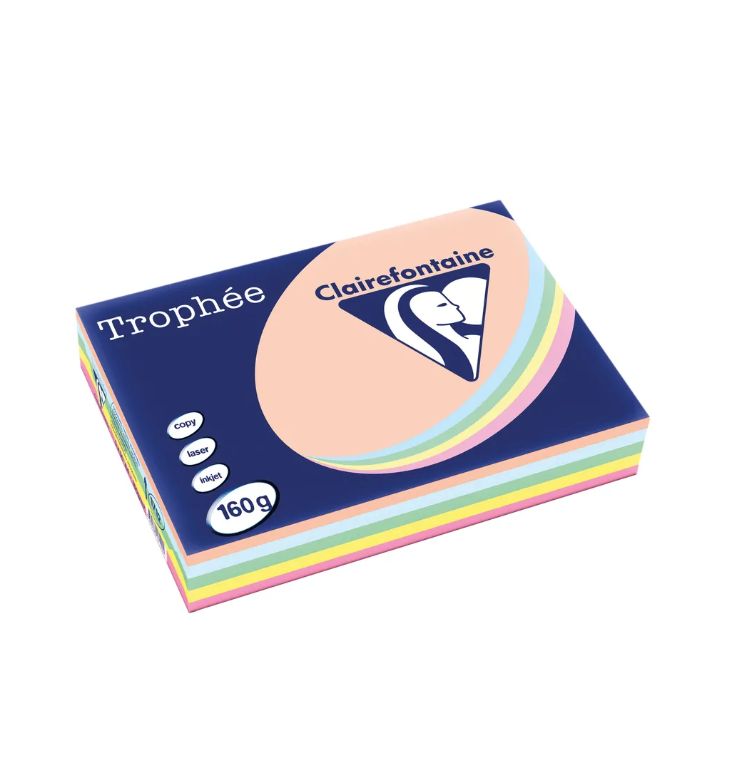 Clairefontaine Trophee Card A4 160gm Pastel Assorted (Pack of 250) 1712C. Trophee coloured card. Compatible with: copiers, laser/inkjet printers and laser fax machines. 160gsm thickness. Colour: Pastel Assorted. Size: A4 (210 x 297mm)