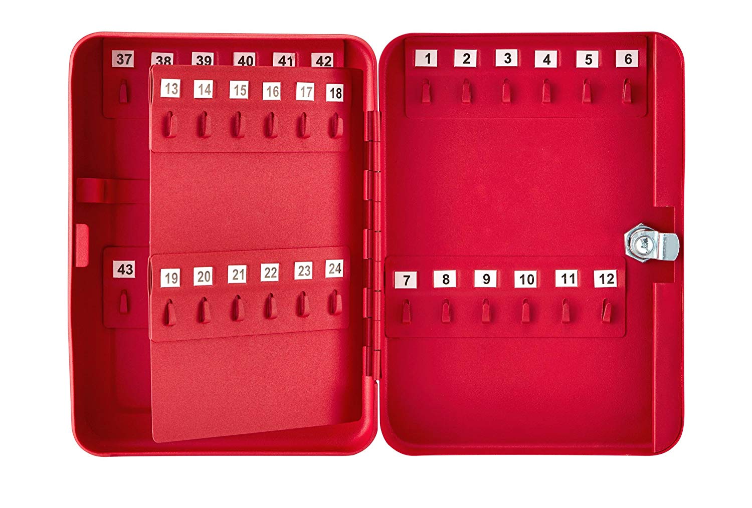 - CONVENIENT, KEY CABINET. This wall mounted key cabinet is offered in two different sizes – 30 and 48 key slots – providing the perfect solution for convenient and secure organization for all of your keys. It has a depth to accommodate larger key rings so you no longer have to remove keys from their rings in order for them to fit inside and comes with key tags to make organization a breeze.