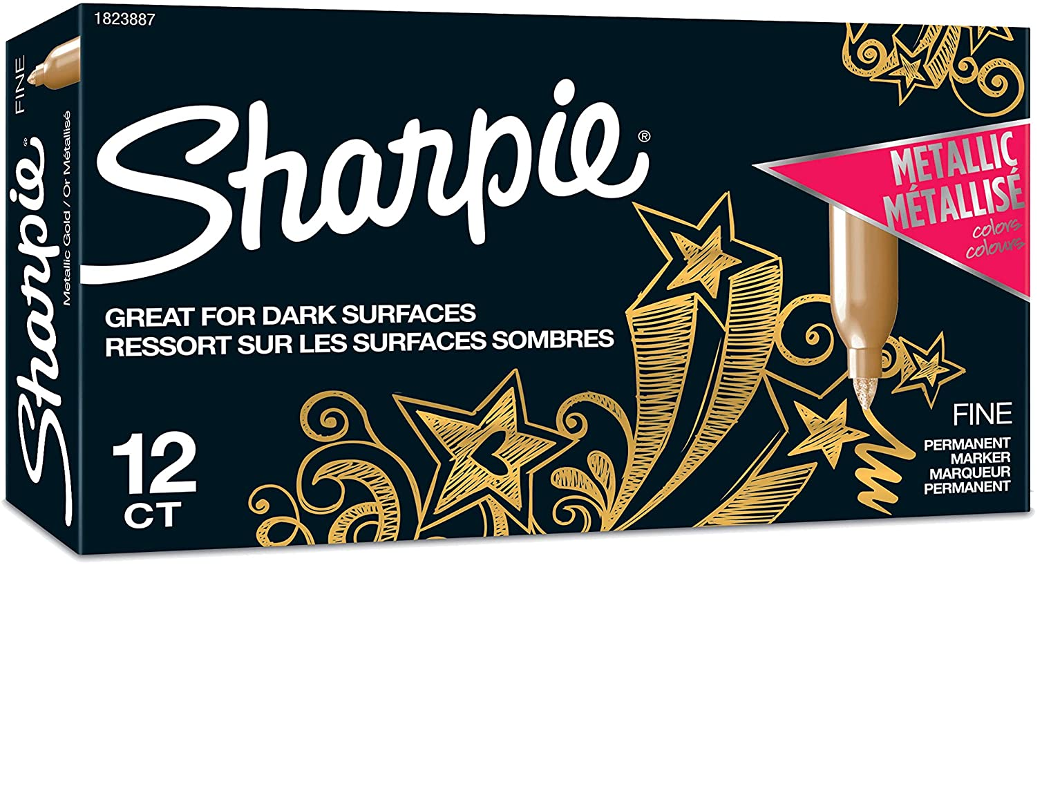 Sharpie Metallic Permanent Markers, Fine Point, Gold, 12 Count